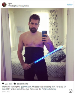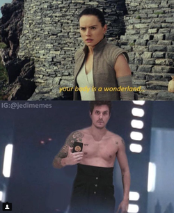 In Star Wars 8, a scene showing a shirtless Kylo Ren went viral on the internet after dozens of fans and trolls began to emulate the look. In the scene, Kyle Ren wears high trousers whilst showcasing his muscular upper body of actor Adam Driver. After days of the movie's premiere, people began to take to the internet where they uploaded photos of themselves attempting the looks of Kylo Ren. The majority of posts have been by men. [2] [3]
