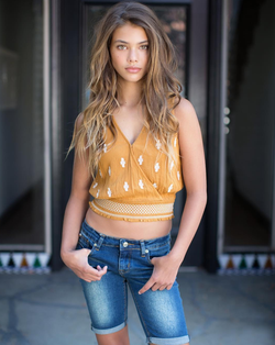 Child model who was signed by Wilhelmina Models and has been featured in campaigns by Guess and Maleficent Toys.