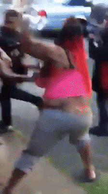Her daughter tries to smack her, push away and let go, but Larita punishes her with a trail of punches while yelling obscenities at her.