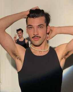 His Instagram features a lot of skittles manicures, pearl necklaces, and single-earrings. He also has a lush eboy haircut.