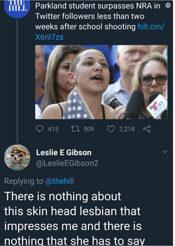Leslie's original tweet against Emma Gonzalez was in response to an article posted by The Hill. [1]