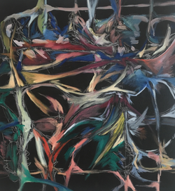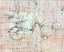 [undefined] [undefined] In 1992 she began developing a drawing language that, for better or worse, connects us to computers. [undefined] In 2004, she had a solo show at the Cartelle Gallery that was cyrated by Sam Freedman and Heather Harmon. [undefined] At the 2009 exhibit at the Los Angeles L2Kontemporary Gallery titled “Mo’ Flow: Blots & Trails,” Nobel worked with fabricator Jack Brogan to create her “Overview” paintings that were shown there. [undefined] In 2011, Nobel set up her studio in Inglewood where it is currently located on La Brea Avenue. [undefined]