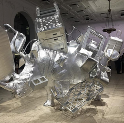 The themes in Nobel’s art mainly explore ideas about technology, science and human connection.