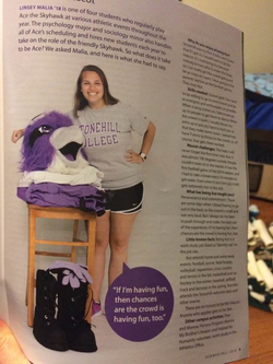 An active member of her student community, Linsey was a peer mentor, a teaching assistant, a member of the Moreau Honors Program, a work study student within Athletics (she was one of four students who was Ace the Skyhawk.