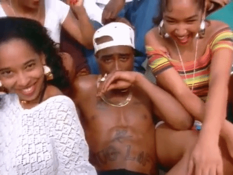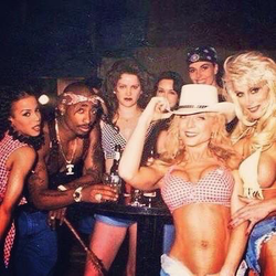 2Pac with some of the female cast in the "How Do U Want It" music video; several women who were well-known porn stars in the 90's.