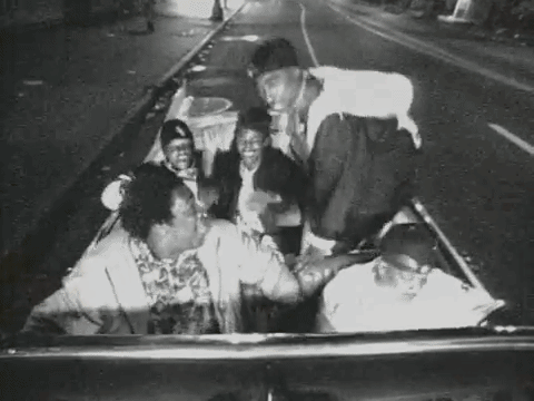 At the end of the video, a Black audience takes over the crowd and the "No Blacks Allowed" sign switches to "Blacks Only."