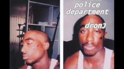 A crowd, one of whom is 2Pac himself is found behind "Police Line Do Not Cross" lines.