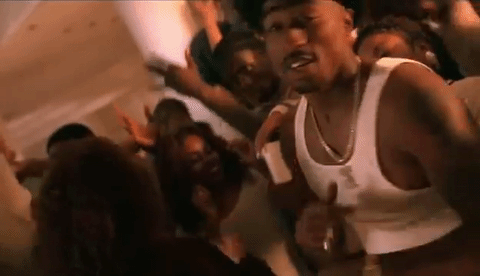 The music video focuses on the Black community, where 2Pac raps and dances in the middle of a crowded circle.