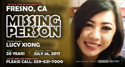 On July 28, 2017, Lucy Xiong went missing in Fresno, California. Fresno Police Department officers said Xiong left her home around 12:30 a.m. and was walking in the area of First Street and Olive Avenue.