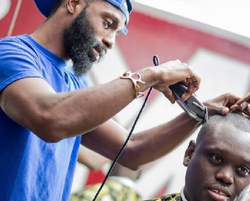Citation Linkywqaugeunhowzrcj.public.blob.vercel-storage.comMr. Black giving a buzz cut to a customer