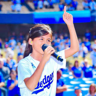Her recent LA Dodgers Father’s Day National Anthem & Dodgers NLDS playoff game appearances received national attention from The Fox 11 Good Day LA Show, Fox11 LA News, NBC 4 LA News CBS 2 LA News, KTLA 5 LA News and Inside Edition.