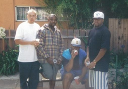 Photo taken in 93' of Malcolm with his friends as a young man in Oakland.