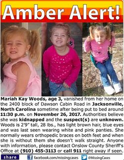 An AMBER Alert was issued just before noon on Tuesday November 28, 2017. The Federal Bureau of Investigation is also aiding in the search for Mariah. [undefined] [undefined] [undefined]