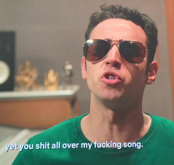 In this episode, Mario is first introduced as one of the test subjects for the Crip-a-Cola beverage brand created by Crips with the help of Killer Mike as a way for them to monetize on their name the same way the Hells Angels have for the past decades in the U.S. Mario is very open about his opinion regarding the beverage which leads Killer Mike to call him a "Racist".
