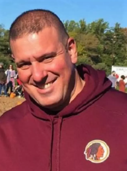 Mark Zeitounian wearing a Washington Redskins sweatshirt