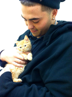 Matthew Menedez with a kitten