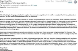 She ended the email, “Bottom line: Continuing this practice may make it harder for you and future international students to get research opportunities while in the program.”