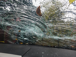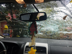 Photo of the shattered windscreen on Jason and Victoria Chapa's 2008 Lincoln MKX alleged to have been caused by Melissa Shelton.