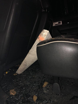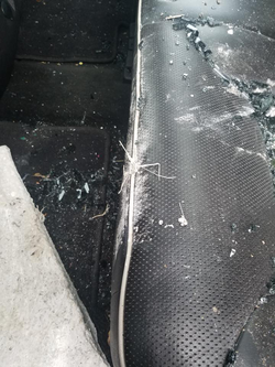 The deputies “observed the front windshield of the vehicle was shattered and the back driver side window had been completely broken out with what appeared to be a broken piece of cement curb.”
