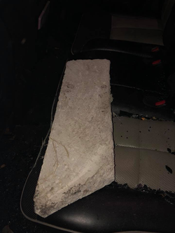 Photo of the concrete curb piece Melissa Shelton allegedly used to damage Jason and Victoria Chapa's 2008 Lincoln MKX.