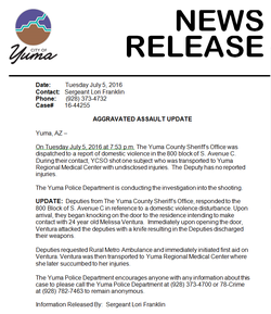 On July 5, 2016 Ventura was shot by two Yuma County Sheriff Deputies who responded to a domestic abuse call on Avenue C near 8th street in Yuma, Arizona. [1]