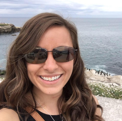 Selfie of Meredith Chapman wearing her sunglasses near the beach.