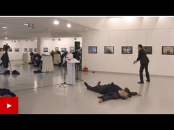 After shooting Andrei Karlov nine times, he screamed "Allahu Akbar" during the attack and shouted: "You Russians destroyed Aleppo and Syria." He has been identified as a member of ISIS. After shooting the ambassador he stood triumphantly over his body shouting “revenge for Syria and Aleppo”. [2] [9]