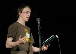 Photo of Micah when he performed at a poetry contest in High School.