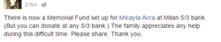 A GoFundMe in Acra's honor has been established to help her family pay for upcoming expenses. A Memorial Fund has also been created at Milan 5/3 Bank for Micayla.