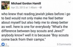 Michael Hamill's anti-semitic comment that he made on his Facebook.