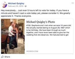 Photo of Michael Quigley with children, who have been omitted from the photo.
