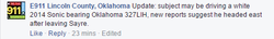 Police believe he is driving a white 2014 Sonic.