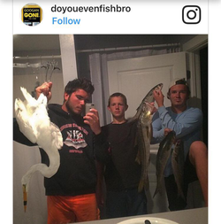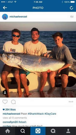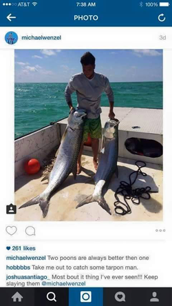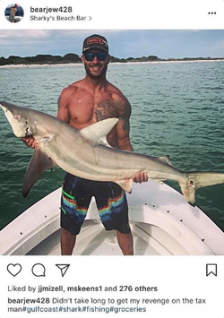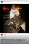 Instagram photo of Michael and friends with a spotted eagle ray they caught which is a protected species that is illegal to harvest