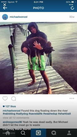 Snapchat video of Wenzel pouring beer into the gills of a Hammerhead Shark and using it as a beer bong