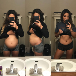 On December 10th, 2017, she posted a mirror photo of herself showing her bloated stomach after having had food that causes the symptom.