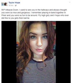 Citation Linkywqaugeunhowzrcj.public.blob.vercel-storage.comFacebook post in Mikayla's memory by her friend Taylor Hope