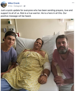 Photo of Mike Cronk with his Rob at the hospital in stable condition. Rob was one of the injured during the Mandalay Bay Resort Shooting- who was shot three times in the chest.