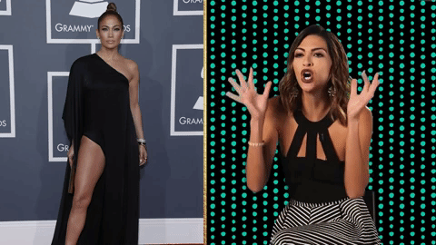 Isa hosting a bit about Jennifer Lopez and The Grammys
