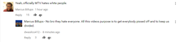 Many accused MTV News to be racist of white men. A minority of the comments were racist and Anti-semitic in nature. [4]