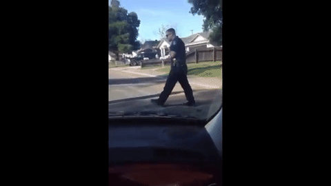 The officer is seen punching Nandi
