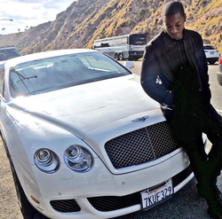 Nathan poses next to a Bentley.