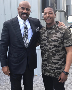 Photo of Nathan with Paula Abdul at an event.