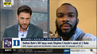 Stephen F. Austin State University and Duke University were tied at 83-83 with only 10 seconds left in the game. Duke's Matthew Hurt couldn't get a handle on the ball when he received a hard bounce pass. The Lumberjacks' Gavin Kensmil scrambled for the ball and managed to pass it to Bain who was alone near midcourt. Without hesitation Bain drove the rock down the court for the game-winning layup, just as the shot clock expired. Officials had to take a second look at the play, but ultimately decided that the shot was good. In a post game interview, Bain recalled riding the intense pressure:[9][20]