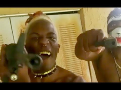 NewAge Jerkboy wears a wedding dress while waving an assault rifle in the video as three women encircle his colorful aura.