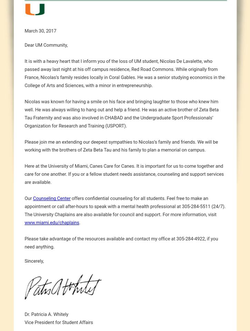 Nicolas De Lavalette was a student at the University of Miami. He is originally from France. [1]