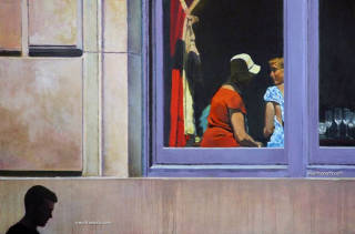 “It is impossible to look at Wieck's painting and not recall Edward Hopper's. Most of his scenes are taken from real life, in which the artist seems to behave like "a voyeur"[5].