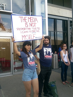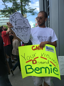 Protestors took to the mic to call out CNN's constant coverage of Donald Trump's racist rhetoric while completely silencing Bernie's message.
