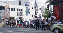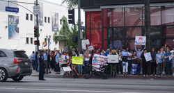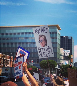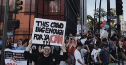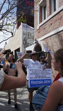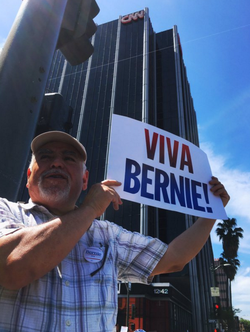 Thousands of Bernie Sanders (Politician) supporters held a peaceful protest outside CNN building on Sunset Boulevard in Los Angeles, CA on Sunday April 3, 2016.