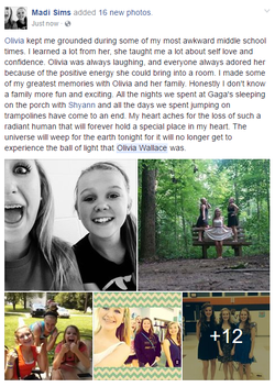 Olivia Wallace (2000- January 7, 2017) was a 16-year-old Secondary school l student from Eaton, Ohio. Friends remember her as a sweet and exciting girl.