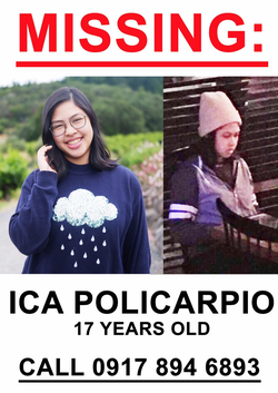 On Thursday December 21, 2017, Policarpio was last seen at a coffee shop along the East Service Road in Muntinlupa. She was supposed to be picked up by her parents.